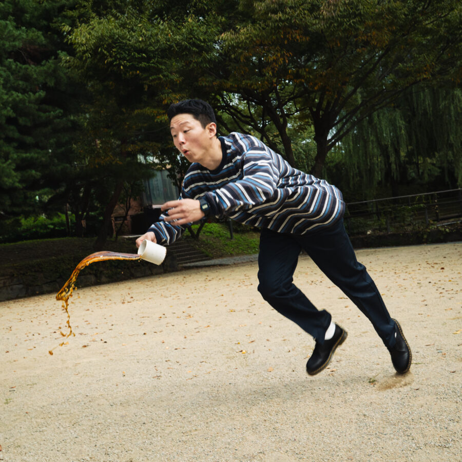 세상이 고깝게 보아도 꿋꿋이 무시하며 살아가는 표정들, 약을 집어 삼키는 모습, 웃는 얼굴,